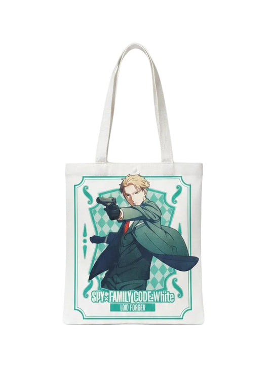 Stylish white anime tote bag with Spy×Family print, lightweight and reusable for everyday use.